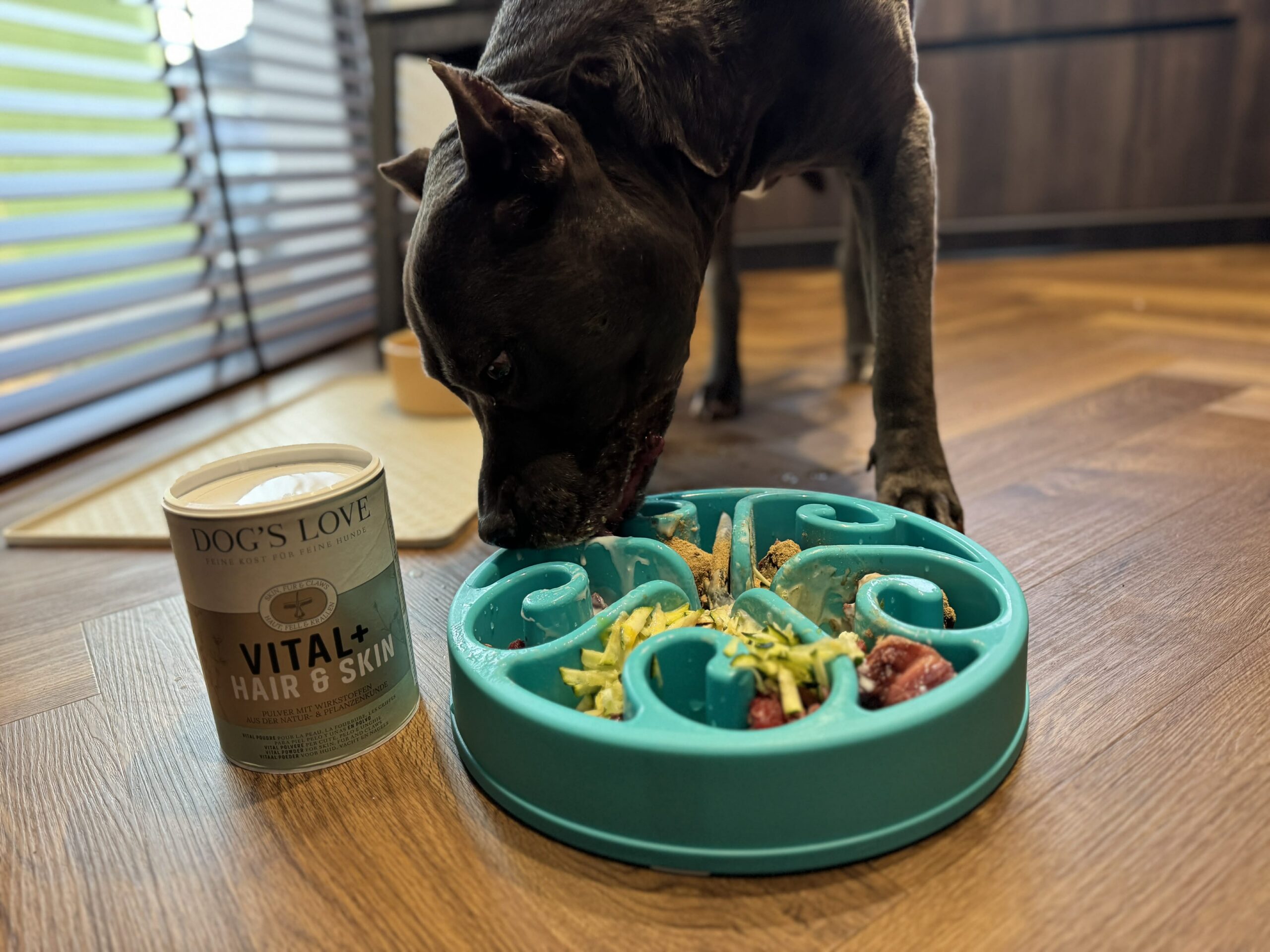 Štai realus pavyzdys naudojant Dog’s Love Hair & Skin papildus apie 3-4 savaites: