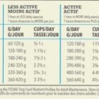 3510 kcal/kg (421 kcal 250 ml/120 g puodelyje), 29% baltymų, 30% angliavandenių ir 41% riebalų.