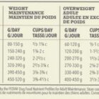 3070 kcal/kg (368 kcal 250 ml/120 g puodelyje), 40% baltymų, 30% angliavandenių ir 30% riebalų.