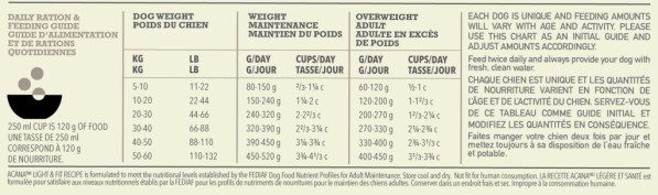 - Mažesnis kalorijų kiekis nei kituose ACANA šunims skirtuose receptuose. Tai padės išlaikyti tinkamą šuns svorį.