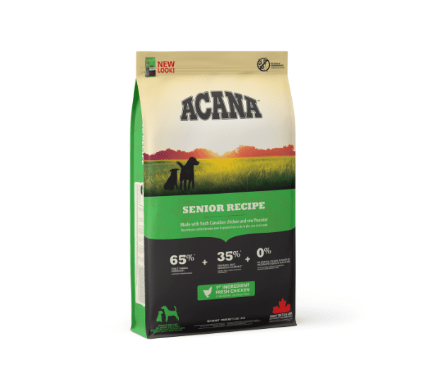 Kai kalbama apie ACANA maistą šunims, kiekvienas ingredientas yra svarbus. Mūsų ACANA Senior vyresnio amžiaus šunų receptas sukurtas padėti puoselėti augintinių sveikatą. Šiame recepte net 65 % kokybiškų gyvūninių ingredientų, tokių kaip šviežia kanadietiška vištiena ir neapdirbtos plekšnės. Gyvūniniai ingredientai taip pat subalansuoti su vaisiais, daržovėmis ir žolelėmis, šie ingredientai sudaro apie 35 %. Receptas yra specialiai sukurtas tam, kad Jūsų vyresnio amžiaus augintiniai būtų aprūpinti aukščiausios kokybės maistinėmis medžiagomis. Visi naudojami produktai yra švieži bei kokybiški.