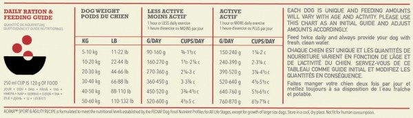 Kai kalbama apie ACANA maistą šunims, kiekvienas ingredientas yra svarbus. Štai kodėl ACANA Sport&Agility receptas sukurtas tam, kad atitiktų visų sportuojančių bei aktyvių veislių poreikius. Šiame recepte net 75 % kokybiškų gyvūninių ingredientų, tokių kaip šviežia kanadietiška vištiena ar neapdirbtos plekšnės. Gyvūniniai ingredientai subalansuoti su vaisiais, daržovėmis ir žolelėmis, šie ingredientai sudaro apie 25 %. Tad šiame recepte gausu gyvūninės kilmės baltymų, kurie būtini aktyviam, judriam augintiniui. Visi ACANA recepte naudojami produktai yra švieži tarsi tiesiai iš ūkininkų turgaus.
