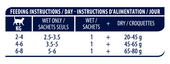 ŠĖRIMO INSTRUKCIJA: Šėrimo norma yra nurodyta ant pakuotės, reiktų atsižvelgti į kūno svorį ir aktyvumą. Laikyti vėsioje, sausoje vietoje. Patiekti kambario temperatūros.Atidarius laikyti šaldytuve iki 2 parų. Visada turi būti švaraus vandens.
