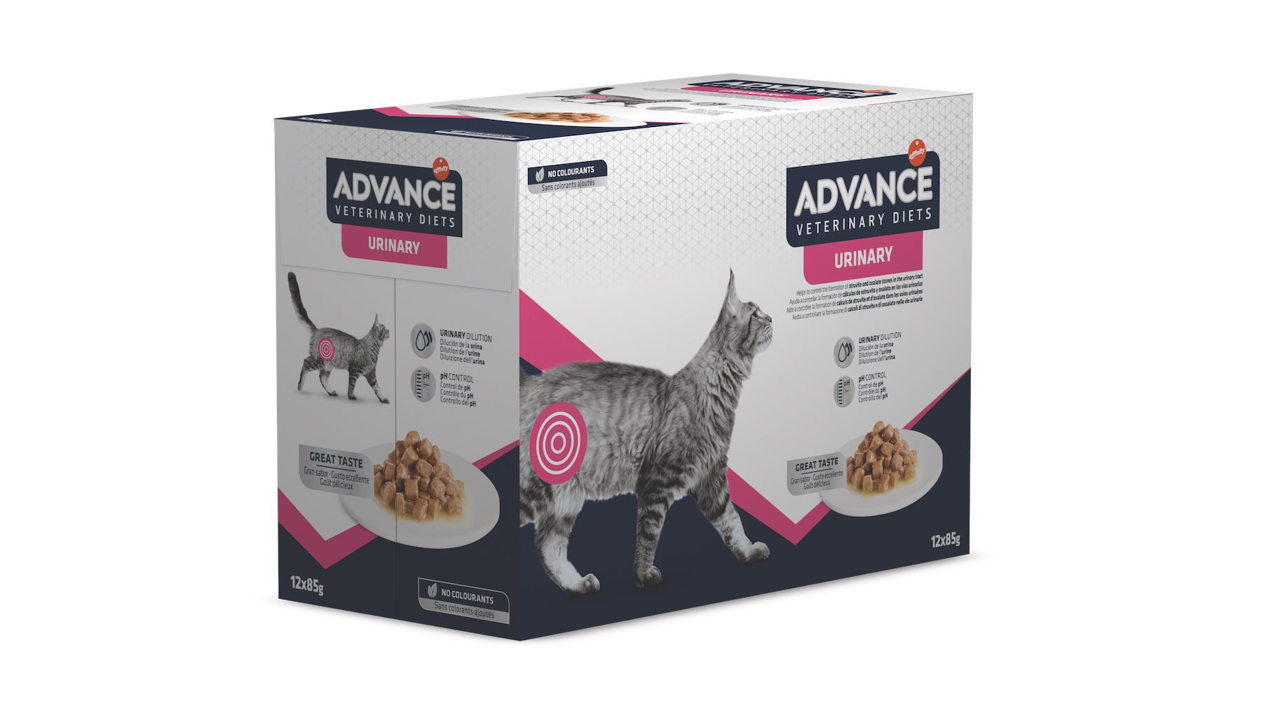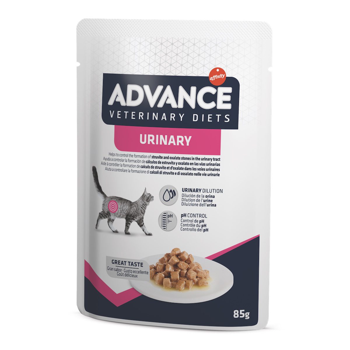 Veterinarinė dieta URINARY skirta suaugusioms katėms, turinčioms problemų dėl šlapimo takų akmenligės. Mažas magnio kiekis padeda tirpdyti struvitinius akmenis.