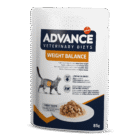 Veterinarinė dieta ADVANCE WEIGHT BALANCE skirta suaugusioms katėms, su sumažinta metabolizuojama energija, skirta kūno svoriui mažinti. Sudėtis: mėsa ir gyvūninės kilmės produktai (kiauliena 19%, vištiena 13%), augalinės kilmės dariniai (cikorijos inulinas 0,1%), žuvis ir žuvies dariniai, mineralai, augaliniai baltymų ekstraktai, įvairūs cukrūs.
