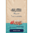 Sudėtis: mėsa (šviežia žuvies mėsa 21,6 %, dehidruota jautiena 20 %, šviežia jautiena 11,2 %, dehidruota žuvies mėsa 4 %), ryžiai, žirniai, paukštienos riebalai, džiovintas obuolių minkštimas, runkelių pluoštai, hidrolizuoti žuvies baltymai 3 %, mielės, lašišų aliejus, mineralinės medžiagos, Ascophyllum Nodosum (jūros dumbliai) PlaqueOff 0,25 %, bruknės, gliukozaminas, chondroitino sulfatas, šeriuotoji juka.