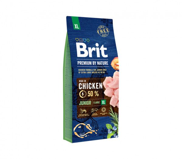 Šunų maistas Brit Premium Junior XL su vištiena ir žolelėmis, sukurtas specialiai ypač didelių veislių (45 –90 kg) šuniukams ir jauniems šunims, pasižymi tokiomis savybėmis, turinčiomis įtakos šunų sveikatai ir būklei: