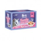 Aukščiausios kokybės visaverčių konservų suaugusioms katėms rinkinys su mėsa ir žuvimi drebučiuose.