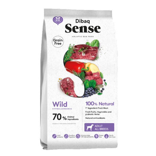 Dibaq Sense sausas maistas alergiškiems šunims su elniena ir šerniena.
