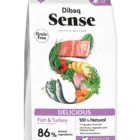 Dibaq Sense begrūdis maistas katėms su žuvimi ir kalakutiena.