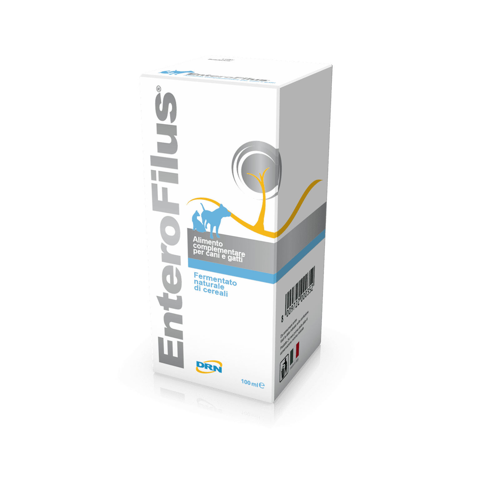 Enterofilus šunų ir kačių pašaro papildas. Skystas simbiotikas (prebiotikas + probiotikas), pagamintas naudojant fermentuotus kviečius.