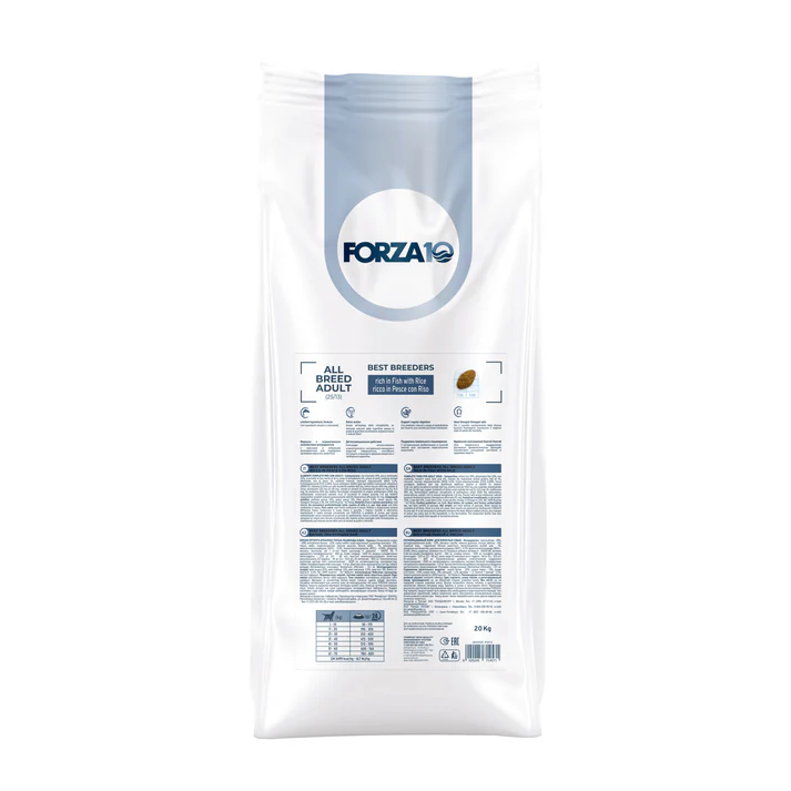 Sudėtis: malti ryžiai 39%, dehidratuota žuvis 22%, ryžių pamiltės, alaus mielės, runkelių griežiniai 6%, vištienos riebalai, hidrolizuoti gyvūniniai baltymai, žuvų taukai 1%, mineralai, mananoligosacharidai (MOS) 0,2%, fruktooligosacharidai (FOS) 0,08%, šeriuotosios jukos (Yucca schidigera).