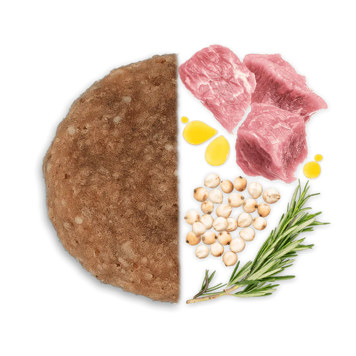 Sudėtis: dehidratuoti kiaulienos baltymai 26%, kukurūzai, baltieji sorgai 23%, ryžių pamiltės, vištienos riebalai, hidrolizuoti gyvūniniai baltymai, žuvų taukai 0,6%, mineralai, mananoligosacharidai (MOS) 0,13%, fruktooligosacharidai (FOS) 0,05%, šeriuotosios jukos (Yucca schidigera).