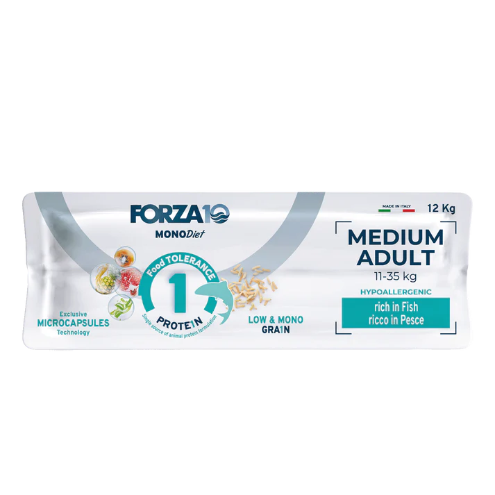 Sudėtis: dehidratuota žuvis 23%, malti ryžiai 22%, žirnių krakmolas, ryžių pamiltės, sveiki žirniai, aliejai ir riebalai (iš kurių lašišų aliejus 3%), kukurūzų baltymai, alaus mielės, hidrolizuoti gyvūniniai baltymai, mineralai, mananoligosacharidai (MOS) 0,2%, fruktooligosacharidai (FOS) 0,08%, kuokštinė grifolė (Grifola frondosa) 0,027%, šviežių vaisių ir daržovių perdirbimo produktai bei gretutiniai produktai: papajinis melionmedis (Carica papaya) 0,025%, augalų perdirbimo produktai: valgomasis ananasas (Ananas spp.) 0,025%, šeriuotosios jukos (Yucca schidigera) 0,024%, žolelių perdirbimo produktai: tikrasis alavijas (Aloe vera) 0,013%, dumbliai (Haematococcus pluvialis (astaksantinas 0,005%)).