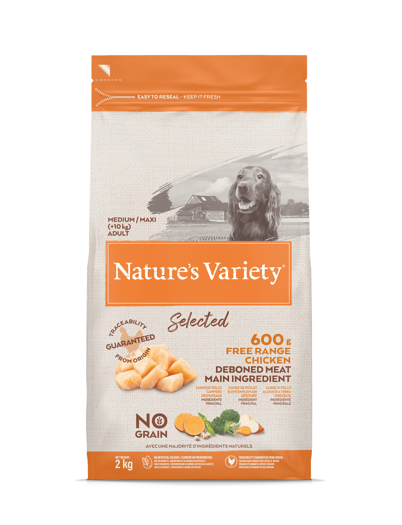 Begrūdis suaugusių šunų pašaras. Iškaulinta laisvai laikomų vištų mėsa yra pagrindinis ingredientas. Praturtintas vaisiais, daržovėmis, supermaistu ir natūraliais alternatyvių angliavandenių šaltiniais.