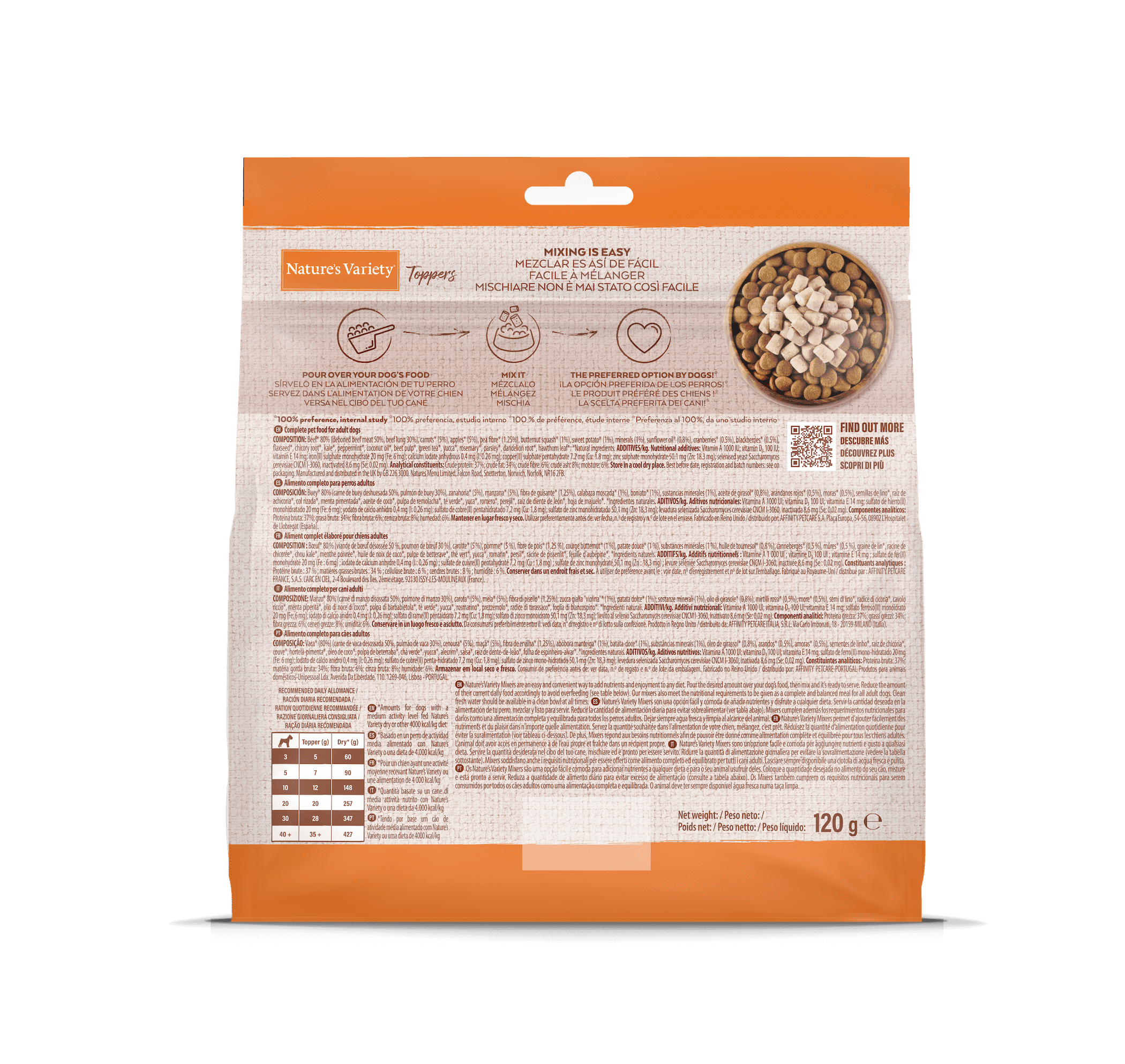 Nature’s Variety Toppers liofilizuoti pašaro paskaninimai su jautiena. Šuo nenoriai valgo ir žiūri į savo pašarą? Mes sukūrėme produktą, kuris paskanins, bet kokį pašarą. Užberkite Nature’s Variety Toppers ant savo šuns pašaro ir stebėkite kaip tuštėja pašaro dubenėlis.