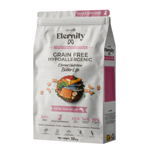 Visavertis, hipoalerginis, begrūdis sausas maistas suaugusiems mini veislių šunims. Pagamintas iš šviežios lašišos, ankštinių augalų ir kruopščiai atrinktų daržovinių ingredientų, kurie pradžiugins jūsų augintinio skonio receptorius ir suteiks optimalų kiekį gyvūninės kilmės baltymų.