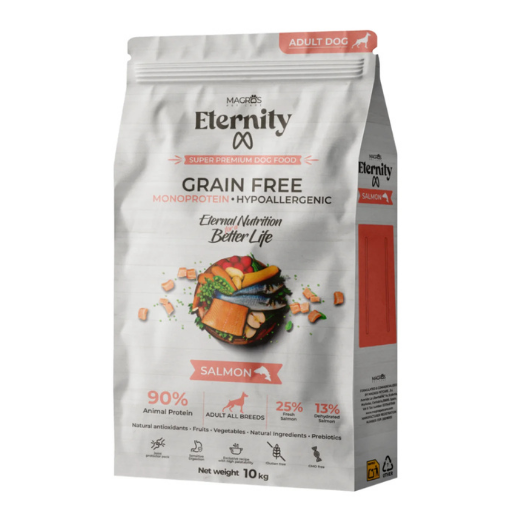 Visavertis, hipoalerginis, vieno baltymo, begrūdis sausas maistas šunims, pagamintas iš šviežios ir dehidratuotos lašišos. Grūdų neturinti formulė ir vienas baltymų šaltinis – lašiša – suteikia subalansuotą ir skanų jūsų šuniui reikalingų maistinių medžiagų kiekį. Atitinka visus visų veislių vidutinių, didelių ir labai didelių suaugusių šunų mitybos poreikius.