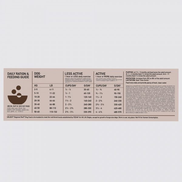 Aprūpinkite savo augintinį visomis reikalingomis maistinėmis medžiagomis su ORIJEN. Šunys yra mėsėdžiai, todėl jiems reikia biologiškai tinkamos dietos, kurioje gausu įvairios gyvūninės kilmės ingredientų. ORIJEN Regional Red recepte yra 85 % kokybiškų gyvūninių ingredientų, tokių kaip neapdirbta jautiena, šerniena, bizoniena, ėriena ir kiauliena. Recepte taip pat naudojami organai ir kaulai – pagal viso grobio (WholePrey) principą. Viso to rezultatas – neprilygstamas receptas jūsų augintiniui.