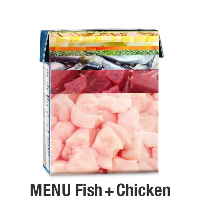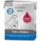 Virtas tik savose sultyse, PLATINUM MENU Fish + Chicken drėgnumas 67,7 %, tai idealu šuniui. Jūsų šuniui tai patiks! Aromatas išlieka nuo pirmo iki pat paskutinio kąsnio.