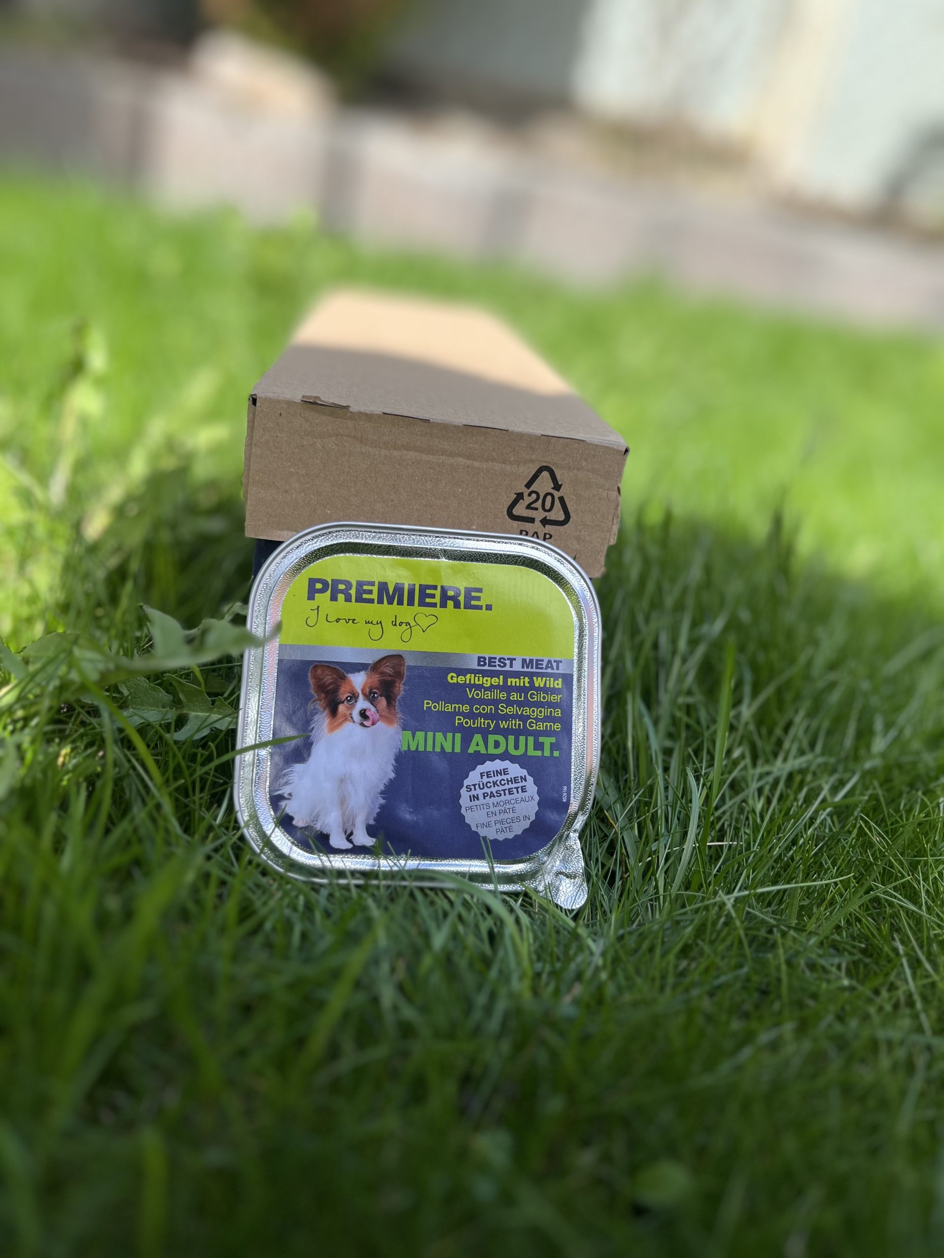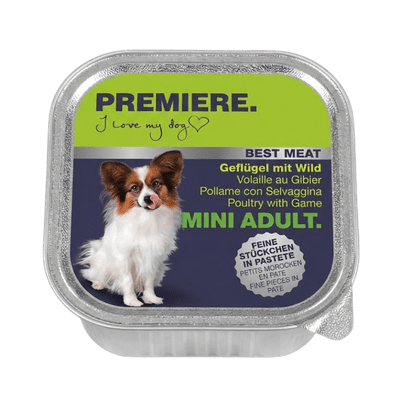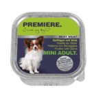 PREMIERE Best Meat Mini Adult yra specialiai sukurta mažiems augintiniams, kurie ieško kažko labai ypatingo. Su geriausiais gabalėliais skaniame paštete, net išrankiausi gurmanai bus palepinti. PREMIERE Best Meat Mini Adult yra specialiai pritaikyta mažo dydžio šunų poreikiams. Iš viso PREMIERE Best Meat Mini Adult sudėtyje yra 65 % gyvūninės kilmės ingredientų, todėl jūsų šuo gauna svarbių baltymų ir lengvai virškinamų aminorūgščių, kad išlaikytų natūralų mūsų gyvybingų mažųjų augintinių gyvybingumą ir formą. Inulinas taip pat palaiko optimalų virškinimą. Iš pirmo žvilgsnio privalumai: 65% mėsos ir gyvulinės kilmės ingredientų; Su inulinu optimaliam virškinimui palaikyti; Labai tinka išrankiems augintiniams; Su vitaminais, mikroelementais ir mineralais; Be dažiklių ar kvapiųjų medžiagų; Be sojos ir cukraus.