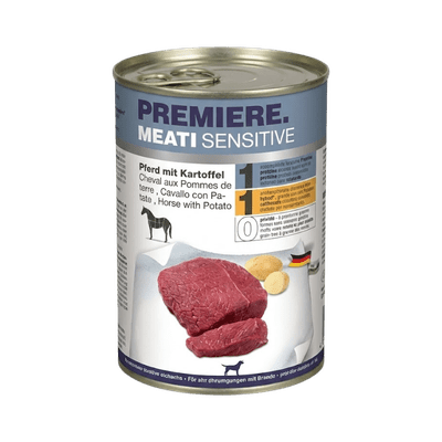 PREMIERE Meati Sensitive – šunims, turintiems jautrumą mitybai ir maisto netoleravimą. Specialiai pritaikytas šlapias maistas, kuriam būdingi šie privalumai: recepte tik vienas pasirinktas baltymas, be augalinių angliavandenių, ypač tinka šunims, kurie blogai reaguoja į ryžius, grūdus. PREMIERE Meati Sensitive tinka ne tik mitybai jautriems, bet ir alergiškiems šunims;