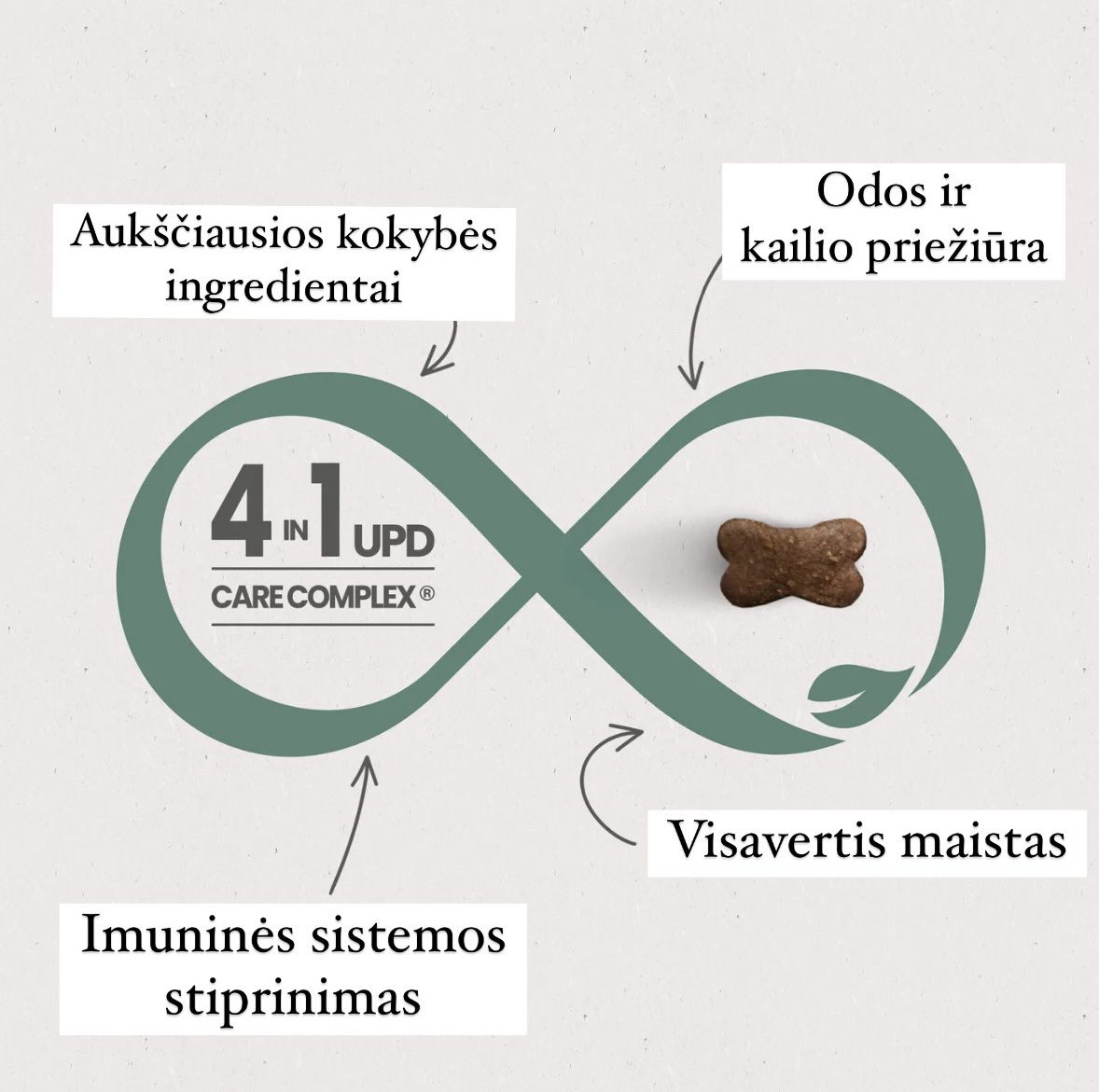 - Sudėtyje yra lašišų aliejaus Omega 3&6, kuris labai svarbus stipriai širdžiai, sveikai odai ir žvilgančiam kailiui palaikyti.
