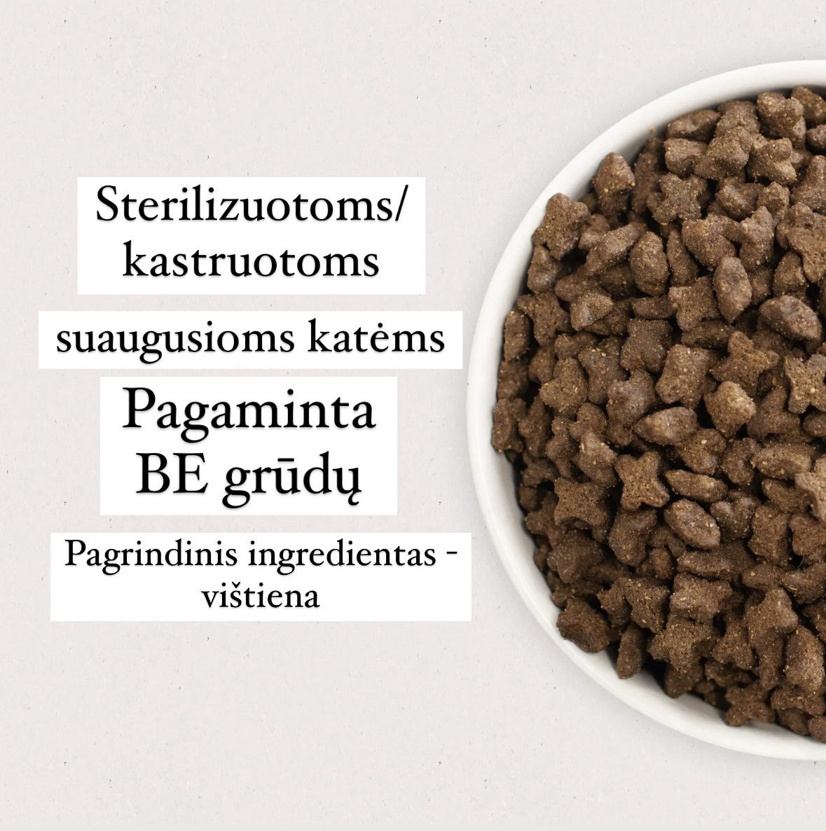 Šiame recepte yra 70 % gyvūninės kilmės ingredientų, kad būtų laikomasi jūsų katės mėsėdžių raciono ir tiekti jai tikruosius poreikius atitinkantį maistą.