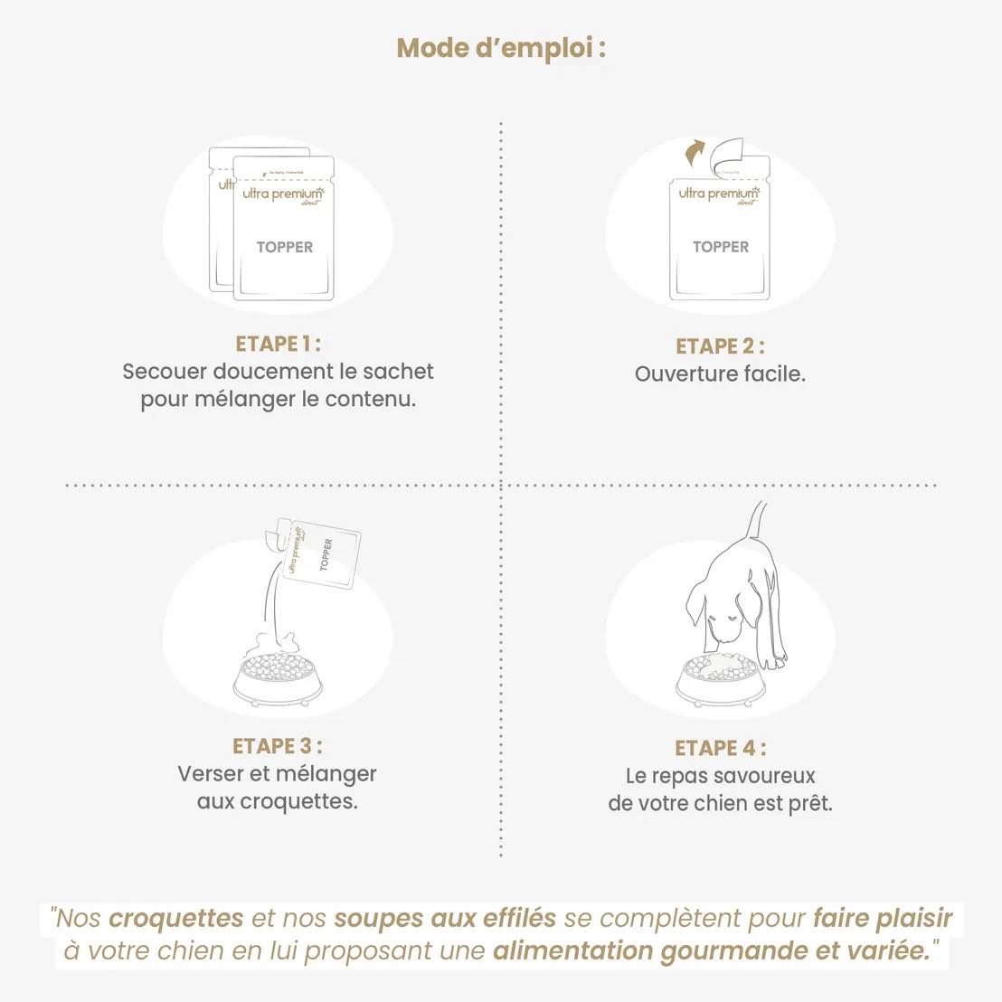 Vištienos sriuba yra papildomas maistas skystu pavidalu su vištienos juostelėmis, morkų gabalėliais ir rozmarinu. Todėl jį reikia duoti kartu su visaverčiu maistu, pritaikytu jūsų šuns poreikiams. Sriuba idealiai tinka šunims, kurie turi prastesnį apetitą, nes tai paskanins kasdieninį maistą.